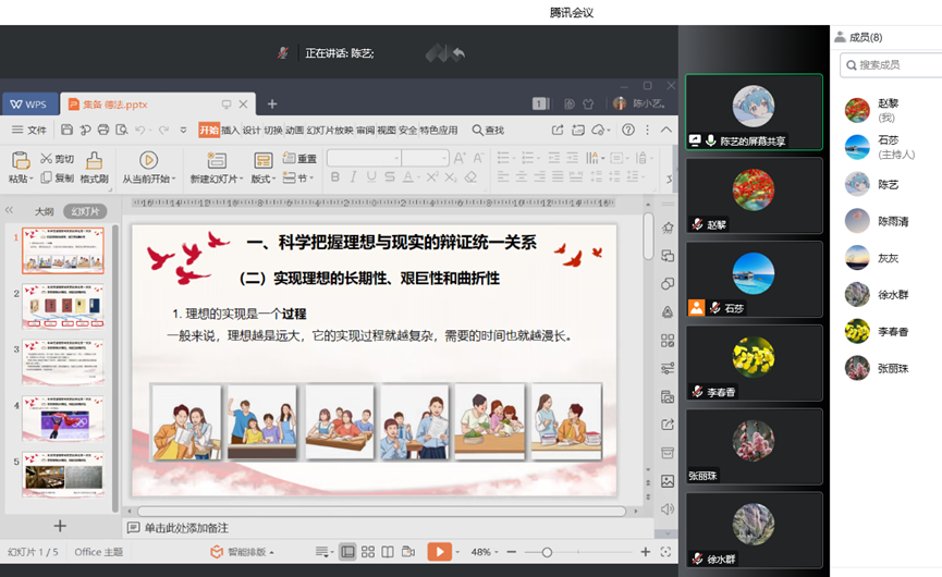 接著,陳雨清老師和陳藝?yán)蠋熥隽似谓虒W(xué)分享,《堅(jiān)持走中國(guó)特色社會(huì)主義道路》和《實(shí)現(xiàn)理想的艱巨性、長(zhǎng)期性、曲折性》,雨清老師和陳藝?yán)蠋熱槍?duì)這兩個(gè)部分的教學(xué)做了充分的準(zhǔn)備,教學(xué)效果良好。