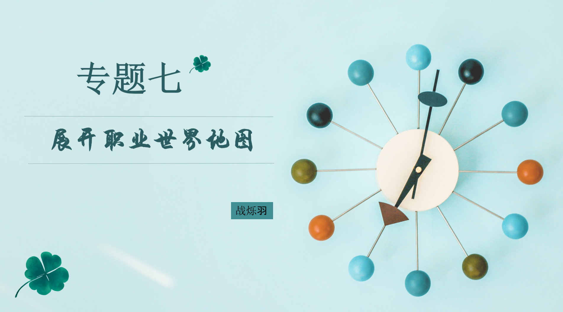 首先由戰(zhàn)偉老師詳細(xì)介紹“專題七 展開職業(yè)世界地圖”和“專題八 做好職業(yè)準(zhǔn)備”共4課時(shí)的整體教學(xué)設(shè)計(jì)。