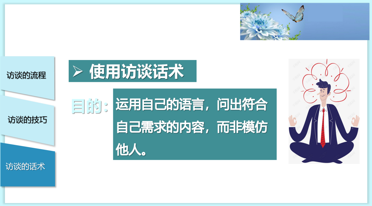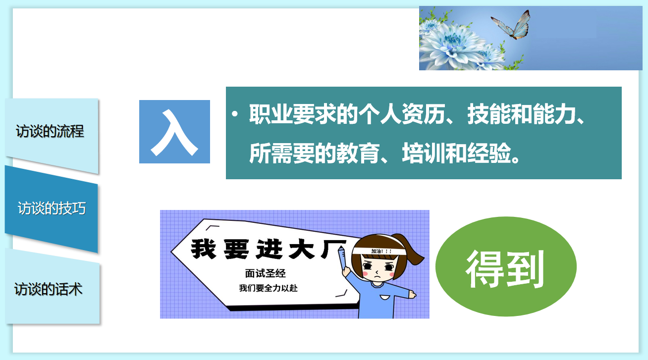 戰(zhàn)偉老師站在企業(yè)的角度,強(qiáng)調(diào)從“行業(yè)+組織+崗位”的角度理解職業(yè),從“入、做、得、拓”四個(gè)方面深入開展生涯人物訪談活動(dòng),同時(shí)結(jié)合實(shí)例建議了適合的教學(xué)方法和重難點(diǎn)的突破策略。
