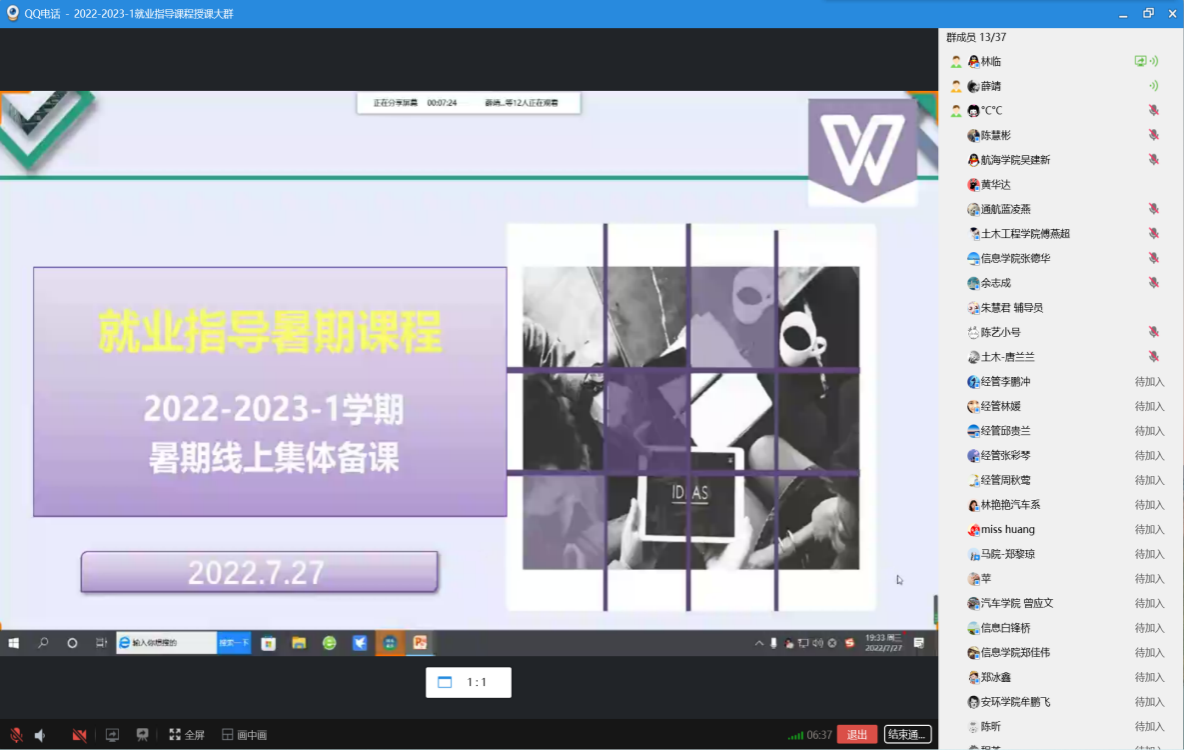 為進(jìn)一步提高課程教學(xué)質(zhì)量,做好畢業(yè)班就業(yè)指導(dǎo)工作,7月27日晚,馬克思主義學(xué)院就業(yè)指導(dǎo)教研室主任薛靖老師組織擔(dān)任2020級《就業(yè)指導(dǎo)》課程任課的全體專兼職教師,開展了本學(xué)期線上集體備課教研活動。