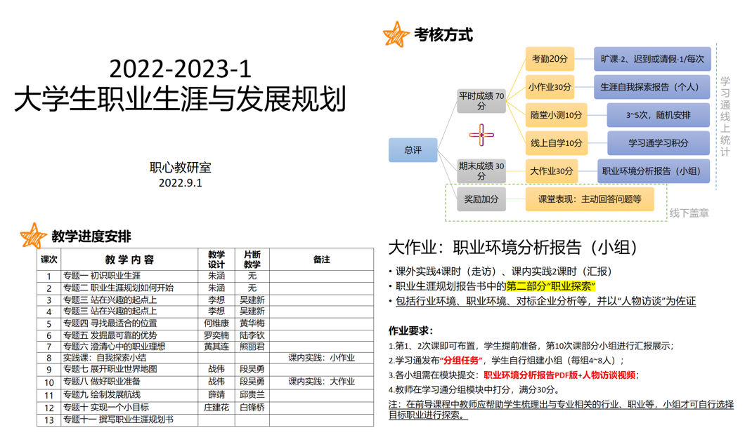 本次教研活動的主題是《大學生職業(yè)生涯與發(fā)展規(guī)劃》課程新學期授課計劃與要求,以及專題一、二的教學設計與實施。