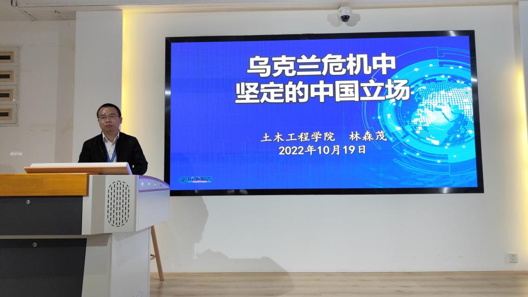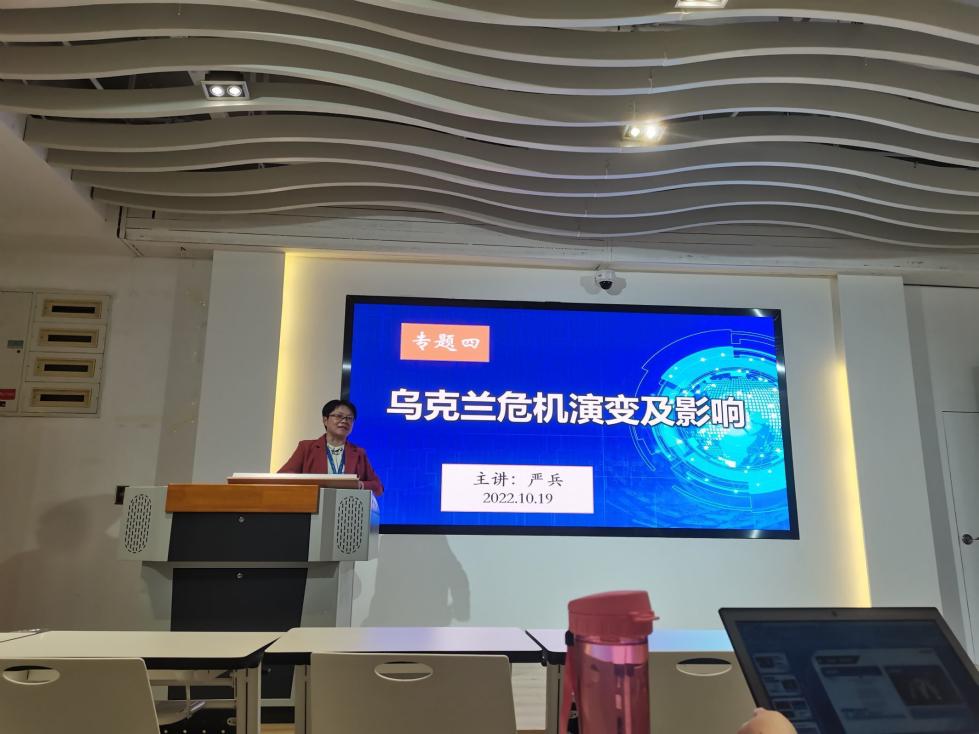 2022年10月19日,馬克思主義學(xué)院“形勢與政策”教研室在黨建館開展了本學(xué)期“優(yōu)·美”教學(xué)工作坊第四次教研活動。本次教研活動圍繞“形勢與政策”課專題四“烏克蘭危機(jī)演變及影響”展開,由嚴(yán)兵老師主講,林森茂和游鏡瀅老師進(jìn)行無生片段教學(xué),全體專兼職教師參加了教研活動。