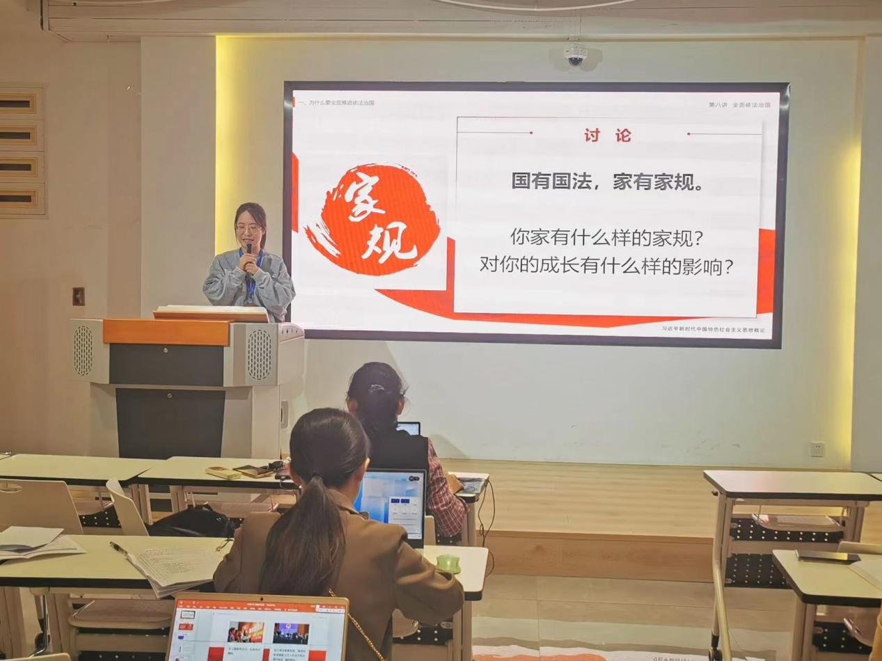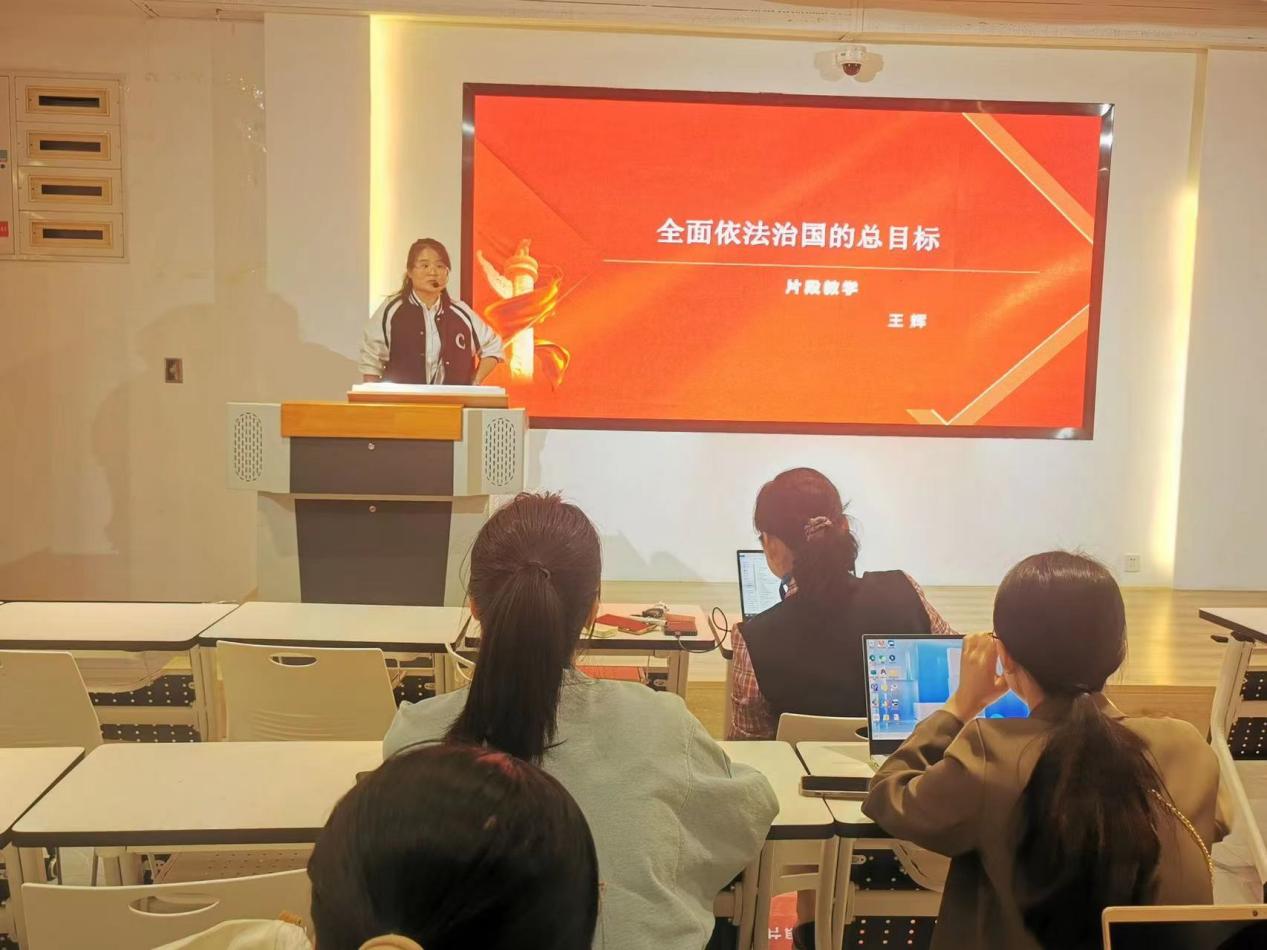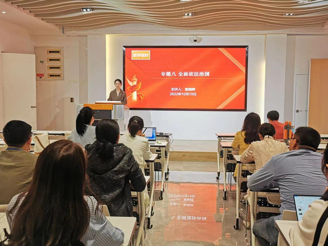 更好推動(dòng)習(xí)近平新時(shí)代中國特色社會(huì)主義思想進(jìn)教材、進(jìn)課堂、進(jìn)頭腦,2022年10月19日,馬克思主義學(xué)院“優(yōu)·美”教學(xué)工作坊舉辦集體備課活動(dòng)。本次活動(dòng)由教研室主任洪凌艷老師主持,主講人為袁穎婷老師,片段教學(xué)老師分別為郭麗超與王輝老師。備課主題為專題八——全面依法治國。