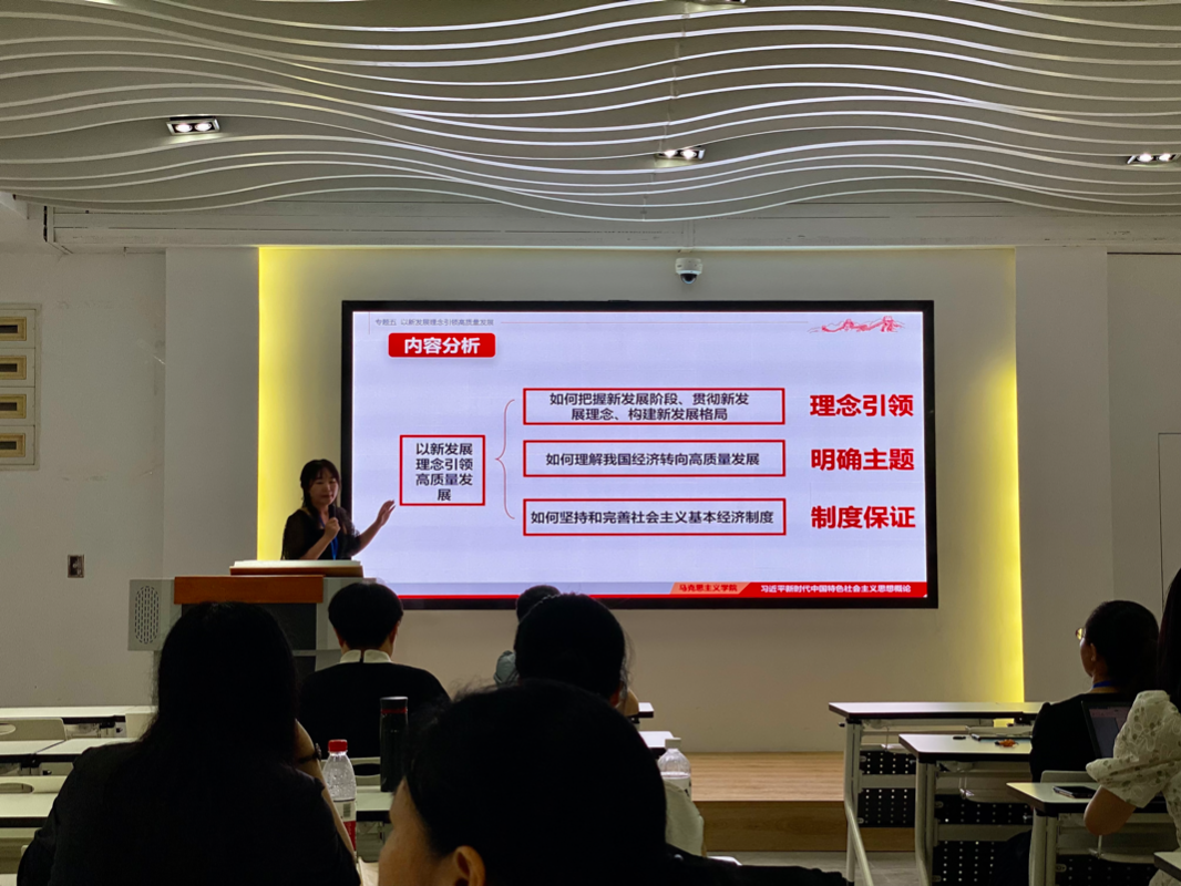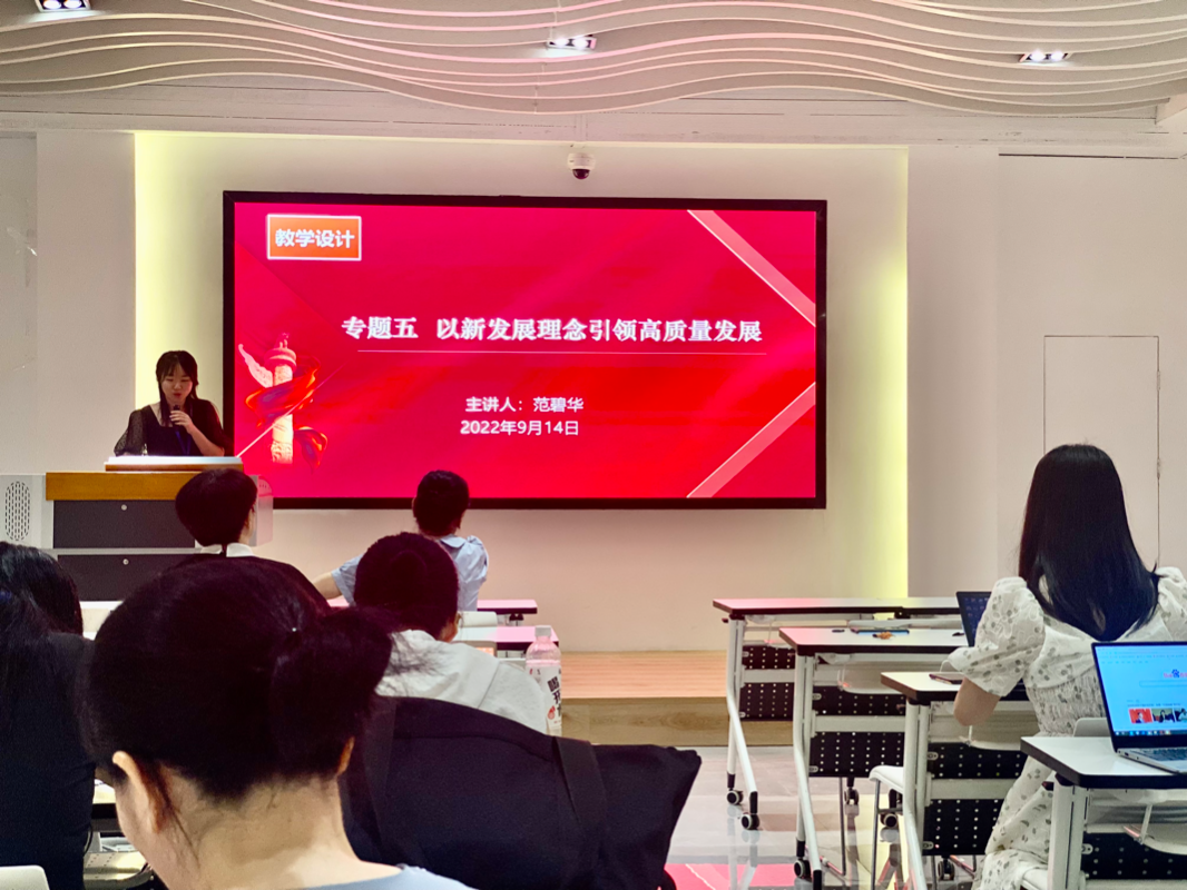 2022年9月14日,馬克思主義學(xué)院“毛澤東思想和中國特色社會主義理論體系概論”教研室全體專兼職教師在圖書館三樓黨建館開展了“優(yōu)·美”教學(xué)工作坊教研活動。本次教研的內(nèi)容是《習(xí)近平新時代中國特色社會主義思想概論》課的專題五————以新發(fā)展理念引領(lǐng)高質(zhì)量發(fā)展,由范碧華老師擔(dān)任主講。