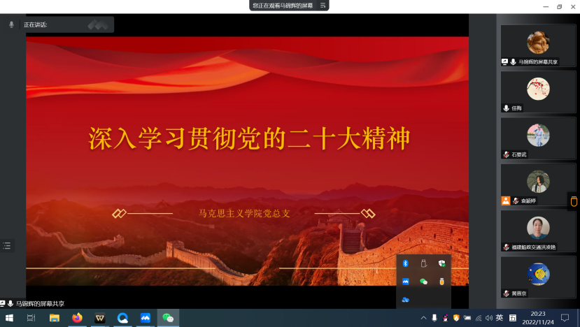 為進一步落實好黨的二十大精神進課堂,發(fā)揮思政課落實立德樹人根本任務(wù)的關(guān)鍵課程作用,馬克思主義學(xué)院黨總支組織全體教師多次參加教育部組織的理論大講堂宣講報告會,參加由中共福建省委教工委、福建省教育廳、福建師范大學(xué)主辦的本碩博一體推進黨的二十大精神融入思政課研討會暨學(xué)習(xí)貫徹黨的二十大精神思政課教師集體備課會,組織“黨的二十大報告內(nèi)容進課堂”教學(xué)研討會和集體備課會,著力提升思政教師在課堂教學(xué)環(huán)節(jié)將報告新提法新思想融入到當(dāng)前的各門思政課課堂教學(xué)能力。