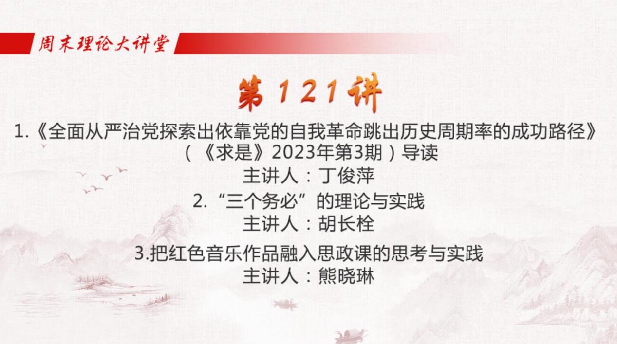 5月12日,由教育部主辦,全國高校思想政治理論課教師網(wǎng)絡(luò)集體備課平臺承辦的“周末理論大講堂”第121講開講。馬克思主義學(xué)院組織全體教師觀看學(xué)習。