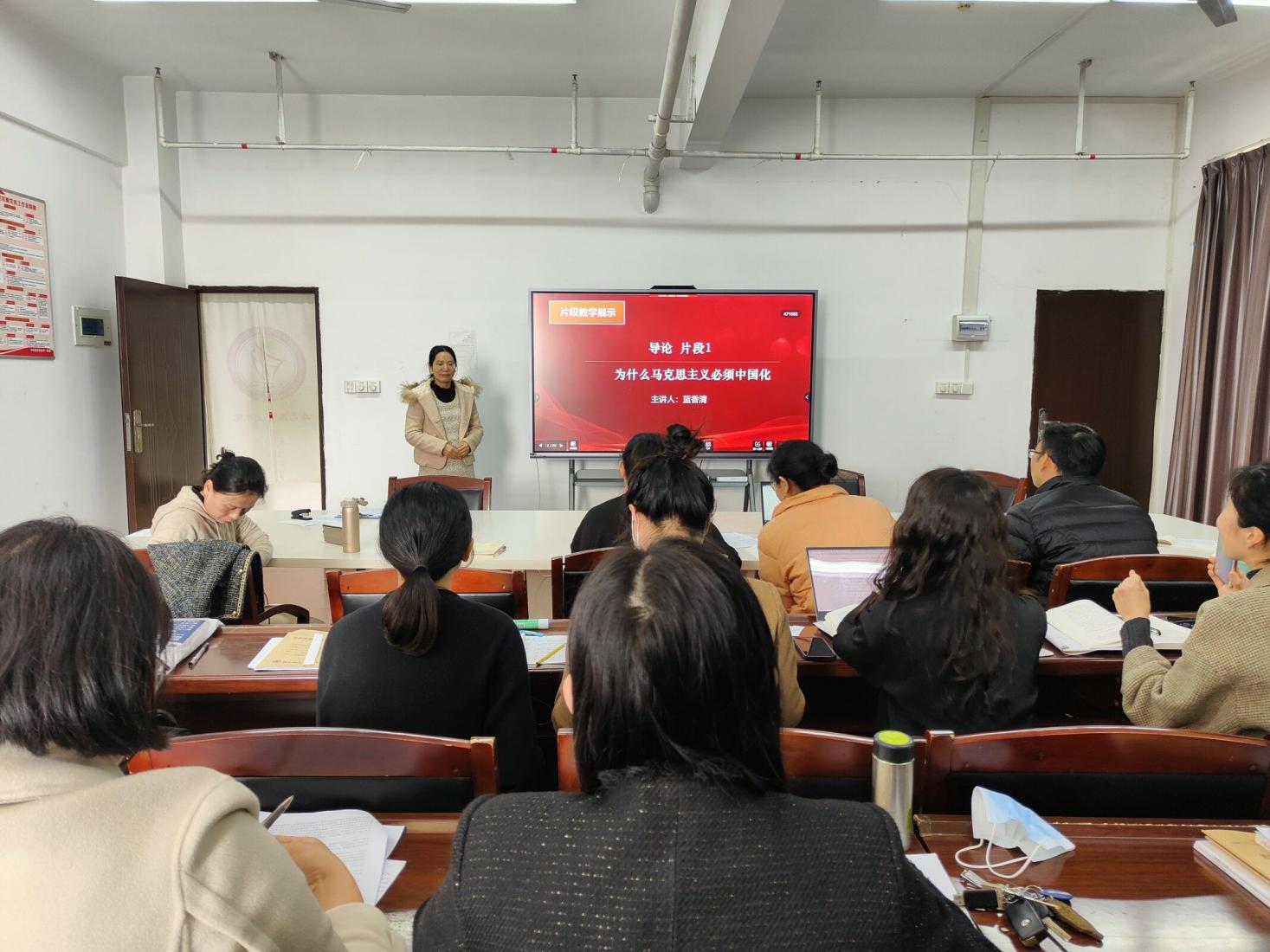 2023年2月19日,馬克思主義學(xué)院“毛澤東思想和中國(guó)特色社會(huì)主義理論體系概論”教研室全體專兼職教師在圖書館11樓1101室開展了“優(yōu)·美”教學(xué)工作坊教研活動(dòng)。本次教研的內(nèi)容是本課程的“導(dǎo)言 馬克思主義中國(guó)化時(shí)代化的歷史進(jìn)程與理論成果”,由江冰老師擔(dān)任主備課人。