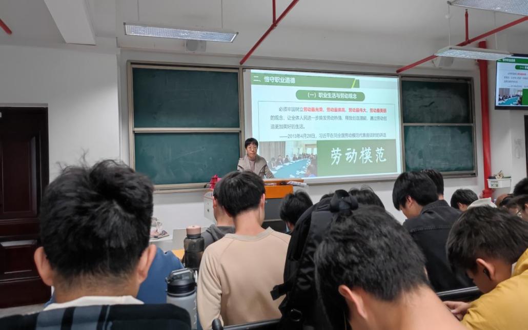 江暉老師在給2022級(jí)現(xiàn)代物流管理1、2班講授“職業(yè)生活與勞動(dòng)觀念”