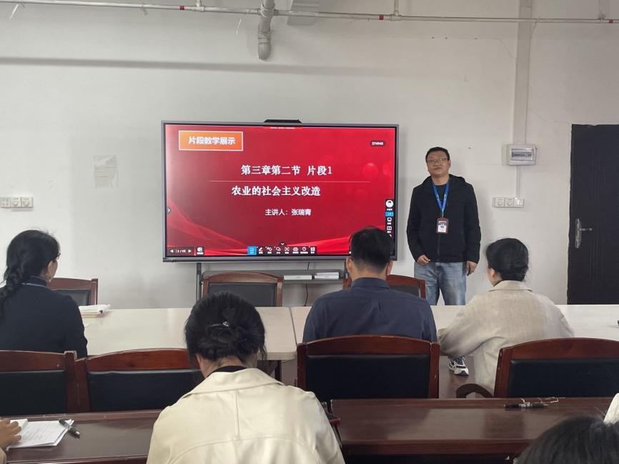 張瑞青老師和鄭黎瓊老師分別就“農(nóng)業(yè)的社會主義改造”和“中社會主義基本制度確立的重大意義”兩個知識點開展片段教學,對教學內(nèi)容進行有益的補充和擴展,對教學案例的分析為概論課教師的課堂授課提供了豐富的素材,并且結合學生關切的問題設置相關討論話題,有利于幫助學生更系統(tǒng)、更深刻的理解掌握課程中的內(nèi)容。