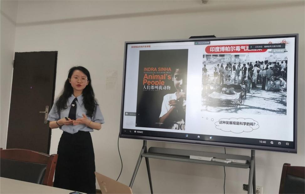 黃晉京老師圍繞科學發(fā)展觀的第一要義、核心內容、基本要求和根本方法等方面進行闡析。說課過程中,黃晉京老師分享了個人的教學策略和教學方法,引導與會教師深入思考概論課如何把道理講深、講透、講活。她建議在本章教學中,要充分采用橫向縱向對比法、視頻法、案例法、討論法等教學法式來增加學生的抬頭率,激活學生的思考,在緊密聯系當今世界實際,當代中國實際和學生自身思想實際中,樹立船政學子的馬克思主義歷史觀、辯證觀,拓展政治意識、大局意識,提升分析、解決問題的能力。