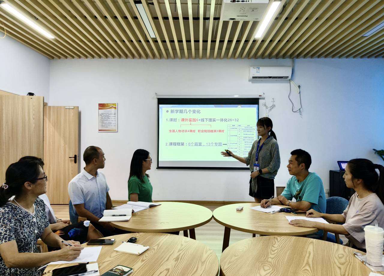 本次教研活動圍繞新學期《大學生職業(yè)生涯規(guī)劃與發(fā)展》課程,首先由教研室主任李想針對課程的新變化,包括內(nèi)容重構(gòu)、課時分配、考核方法等方面進行規(guī)范統(tǒng)一,接著由朱涵、吳建新兩位老師進行專題一、二的教學設(shè)計介紹與教學片斷展示。