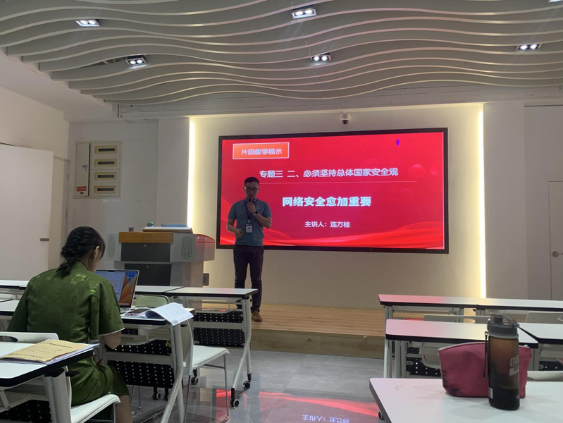 張羅丹老師和連萬桂老師分別圍繞“必須堅持總體國家安全觀”“網(wǎng)絡(luò)安全愈加重要”知識點進行了無生片段教學。