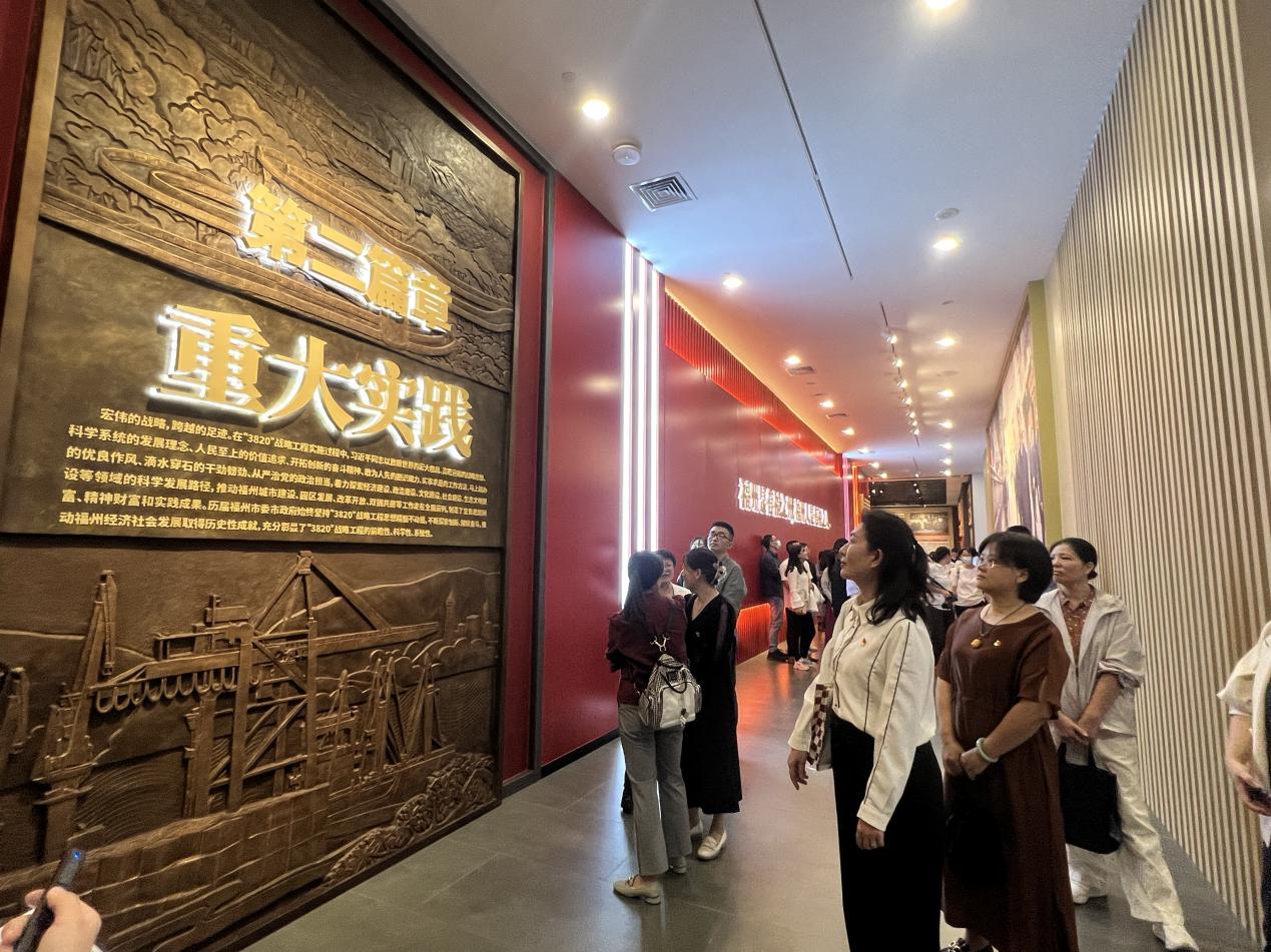 成就展從序廳氣勢恢宏的巨幅漆畫《閩山閩水物華新》展開,以“3820”戰(zhàn)略工程為主線,分“戰(zhàn)略擘畫、重大實踐、賡續(xù)奮斗”三大篇章,全方位、多角度展現(xiàn)了“3820”戰(zhàn)略工程實施30年來福州的發(fā)展歷程和輝煌成就,充分反映了“3820”戰(zhàn)略工程的科學(xué)性、前瞻性、系統(tǒng)性。在講解員的引導(dǎo)下,大家沿著歷史的軸線,在一張張感人的歷史照片、一段段生動的視頻影像、一件件珍貴的實物展品前,駐足觀看、認(rèn)真端詳、細(xì)細(xì)品讀,重溫習(xí)近平總書記在福州工作期間開創(chuàng)的重要理念和重大實踐,真切感受30年來福州的發(fā)展巨變,深入感悟習(xí)近平總書記高瞻遠(yuǎn)矚的戰(zhàn)略思維、銳意創(chuàng)新的改革思路、求真務(wù)實的工作作風(fēng)和人民至上的執(zhí)政理念,進(jìn)一步增強(qiáng)“學(xué)思想、強(qiáng)黨性、聽黨話、跟黨走”的責(zé)任感和使命感。