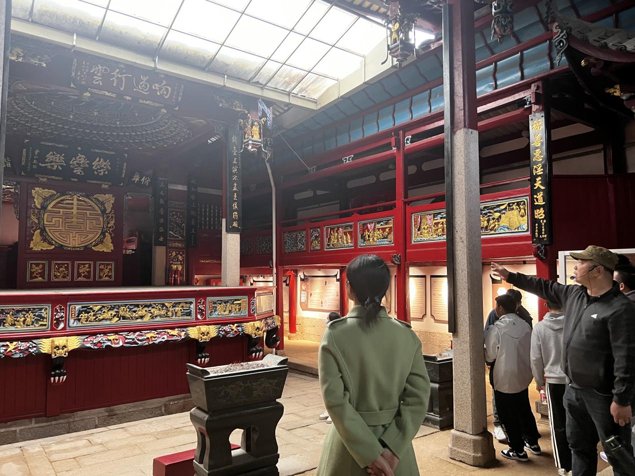 隨后,同學(xué)們來到了侯官村,跟隨侯官村村委會紀(jì)委委員王國峰的介紹,進行實地考察與深入走訪。侯官自漢代建縣以來,以閩越文化為基礎(chǔ),在長期的歷史發(fā)展中不斷融合其他多元文化,保留儒家文化傳統(tǒng)及古代中原文化的精神內(nèi)涵,展現(xiàn)出文藝繁榮、交流活躍,文明進步的生動局面。“開眼看世界的第一人”林則徐、“中國船政之父”沈葆楨、中國近代“西學(xué)第一人”嚴(yán)復(fù)、“黃花崗七十二烈士”林覺民和方聲洞……一群引領(lǐng)時代的杰出人物都來自侯官。同學(xué)們在參觀中學(xué)習(xí)歷史知識,在考察中感悟文化偉力,深刻感受到“侯官”早已不僅是一個地名詞,更是一種精神層面的標(biāo)志性符號。