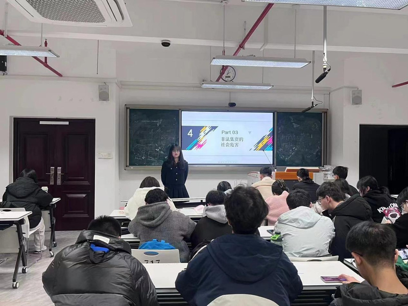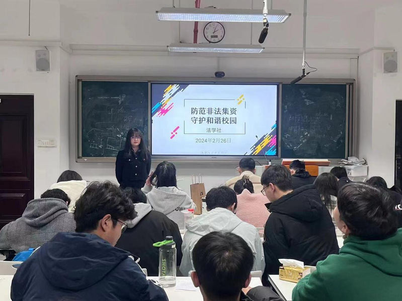 為進(jìn)一步擴(kuò)大防范非法集資宣傳,有效降低潛在非法集資風(fēng)險,2024年2月26日,法學(xué)社于南區(qū)綜合實訓(xùn)大樓405教室開展“防范非法集資 守護(hù)和諧校園”宣傳活動。