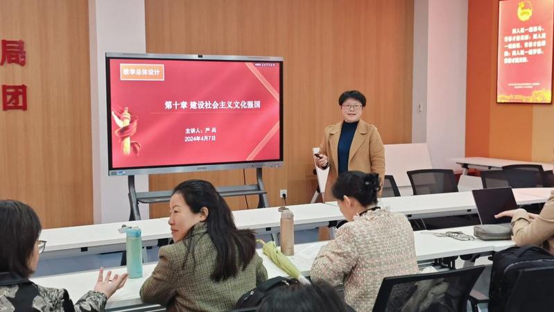 為更好地開展“習近平新時代中國特色社會主義思想概論”課程教學,2024年4月7日,馬克思主義學院習近平新時代中國特色社會主義思想概論教研室開展了本學期第十一次思政課教師“大練兵”暨“優(yōu)·美”教學工作坊集體備課活動。圍繞本課程的第十章“建設(shè)社會主義文化強國 ”展開教學研究。本次集體備課由嚴兵老師擔任主講,張玉祥與張瑞青老師分別做片段教學展示。