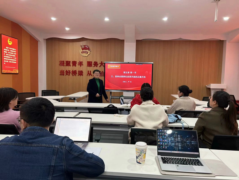 為進一步開好、講好“習(xí)近平新時代中國特色社會主義思想概論”課,更好地推進習(xí)近平新時代中國特色社會主義思想“三進”工作,提升教師的授課能力和水平,2024年3月15日,馬克思主義學(xué)院習(xí)近平新時代中國特色社會主義思想概論教研室開展了本學(xué)期第六次思政課教師“大練兵”暨“優(yōu)·美”教學(xué)工作坊集體備課活動。活動圍繞本課程的第五章“全面深化改革開放 ”進行教學(xué)研究。本次集體備課由黃晉京老師擔(dān)任主講,嚴(yán)兵與張羅丹老師分別做片段教學(xué)展示。