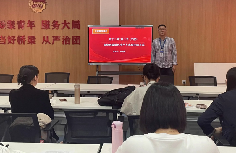 活動圍繞本課程的第十二章“建設(shè)社會主義生態(tài)文明 ”進(jìn)行教學(xué)研究。本次集體備課由欒靜老師擔(dān)任主講,張瑞青老師與陳誼老師分別做片段教學(xué)展示。