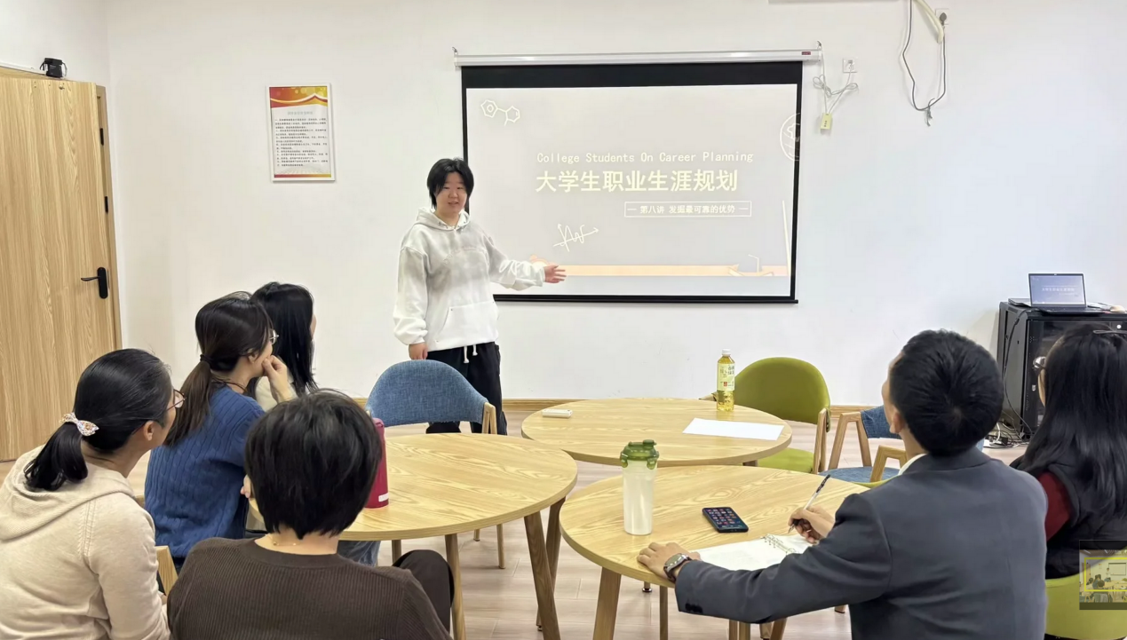 11月13日下午,“優(yōu)·美”教學(xué)工作坊在心理中心活動(dòng)室辦公室召開了《大學(xué)生職業(yè)生涯與發(fā)展規(guī)劃》課程第八講集體備課教研活動(dòng),由羅奕楠老師主講,全體專職教師、兼職輔導(dǎo)員及外聘老師共同參與。