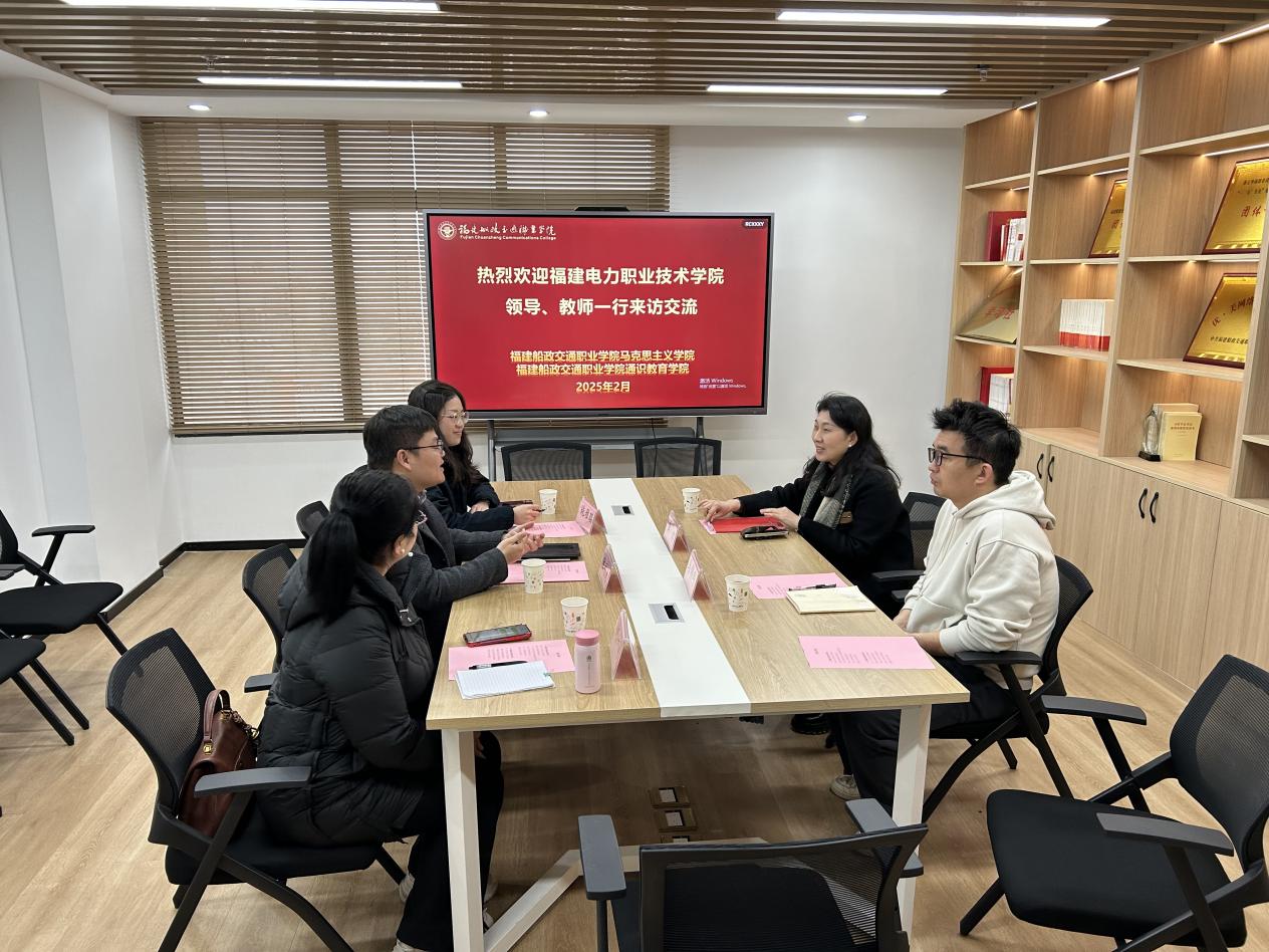 2月19日,福建電力職業(yè)技術(shù)學(xué)院馬克思主義學(xué)院院長(zhǎng)陸利民一行來(lái)訪交流,馬克思主義學(xué)院院長(zhǎng)黃奕、副院長(zhǎng)馬錦輝參加交流座談。會(huì)議由黃奕院長(zhǎng)主持。