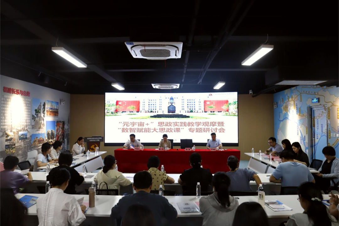 黃奕院長一行參觀了“元宇宙+”思政育人創(chuàng)新實(shí)踐基地,先后體驗(yàn)了基地內(nèi)互動工坊、元宇宙沉浸式教室等核心功能區(qū),通過AR智能眼鏡、移動滑軌屏等設(shè)備感受“數(shù)智賦能大思政課”成果。期間,福州軟件職業(yè)技術(shù)學(xué)院馬克思主義學(xué)院組織開展“數(shù)智賦能大思政課”專題研討會。