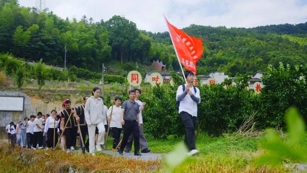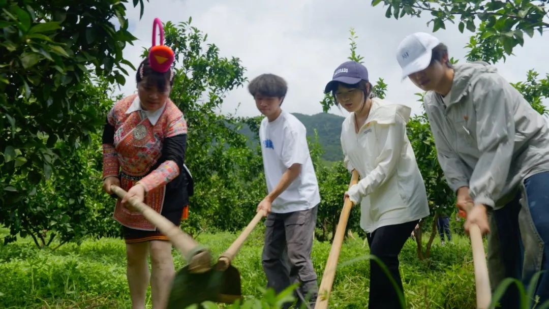 “黨建怎么帶活一個(gè)村?”“畬族婚俗有哪些講究?”“革命時(shí)期南洋村出過哪些英雄?”“如何打造一村一品?”四個(gè)訪談小組帶著問題穿梭在村莊各處。掛職干部展示的“紅黑榜”臺(tái)賬、畬族阿婆講述的鳳凰傳說、老黨員回憶的“地下交通站”往事……這些帶著泥土氣息的答案,讓學(xué)生們?cè)诠P記本上寫得密密麻麻。師生們還走進(jìn)砂糖橘果園參與除草、修剪等勞動(dòng),了解特色水果的種植技術(shù),親身體驗(yàn)農(nóng)業(yè)生產(chǎn)的艱辛與樂趣。學(xué)生代表王雨涵說出“原來鄉(xiāng)村振興需要我們懂政策、懂技術(shù),更要懂民心”時(shí),掌聲里滿是青春與土地的共鳴。