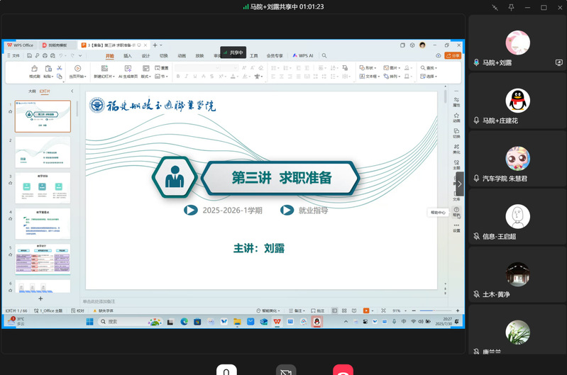 2025年8月3日,馬克思主義學院就業(yè)創(chuàng)業(yè)指導教研室全體專兼職教師通過線上開展“優(yōu)·美”教學工作坊教研活動。本次教研活動圍繞《就業(yè)指導》課程第三講求職準備展開教學研討活動,由劉露老師進行主備。