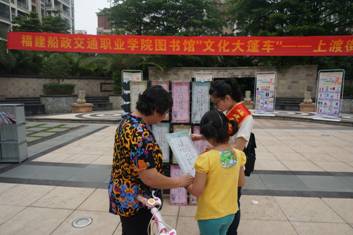 借著“世界讀書日”來臨之際,福建船政交通職業(yè)學(xué)院圖書館第六屆 “書韻滿校園 知識(shí)助遠(yuǎn)航” 讀書月特別活動(dòng)召開了,開展了一系列“文化大篷車”系列活動(dòng)。圖書館“文化大篷車”系列活動(dòng)有走進(jìn)福州市上渡街道江南社區(qū),走進(jìn)福州市倉(cāng)山區(qū)第四中心小學(xué)等為社區(qū)居民服務(wù)系列活動(dòng),活動(dòng)展出《我們的文字》大型圖片展、廉政圖片展、大篷車系列活動(dòng)書簽設(shè)計(jì)比賽獲獎(jiǎng)作品,圖書館支部黨員同志及大篷車義務(wù)導(dǎo)讀員們現(xiàn)場(chǎng)為社區(qū)居民辦理“福建船政交通學(xué)院圖書館社會(huì)讀者借閱證”?;顒?dòng)還收集了大量的閑置圖書,將用于圖書館文化大篷車后期開展的閱讀活動(dòng),同時(shí)東南網(wǎng)對(duì)此次活動(dòng)也進(jìn)行了報(bào)道。