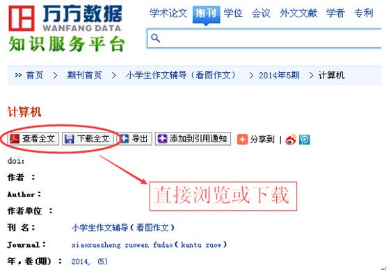 6、如點(diǎn)擊“電子全文”,會(huì)進(jìn)入本館已購(gòu)買(mǎi)的相關(guān)數(shù)據(jù)庫(kù)的文獻(xiàn)詳情頁(yè)面,可以直接瀏覽或下載