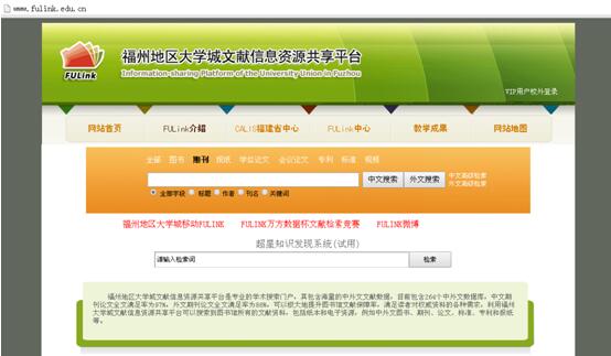 2、網(wǎng)址:福州地區(qū)大學(xué)城文獻(xiàn)信息資源共享平臺(tái)