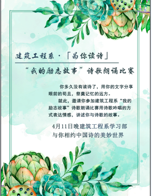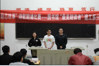 近日,建工系團(tuán)總支承辦了圖書館為你讀詩2017世界詩歌日特別活動(dòng)分賽場(chǎng)——“我的勵(lì)志故事”尋找最美朗讀者活動(dòng)。