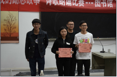 通過班會(huì)、團(tuán)日活動(dòng),各支部深入尋找最美朗讀者。同學(xué)們紛紛挖掘?qū)ふ易约荷磉厽釔圩x書的典型,推薦他們?yōu)榇蠹医榻B閱讀經(jīng)驗(yàn),并且展示自己的閱讀成果,各班活動(dòng)形式多樣,深受廣大學(xué)生的喜歡。4月11日,學(xué)習(xí)部全體成員忙碌的熱火朝天,本次活動(dòng)的決賽如期舉行。活動(dòng)可謂舉辦地有聲有色,臺(tái)上的選手認(rèn)真投入,他們生動(dòng)的講述了自己的閱讀故事,精彩的展示自己的閱讀成果,不僅有現(xiàn)場(chǎng)書法表演,還有詩歌朗誦,商務(wù)禮儀展示,博得在場(chǎng)的觀眾、評(píng)委的陣陣掌聲。臺(tái)下的工作人員一絲不茍,井然有序的進(jìn)行著工作。