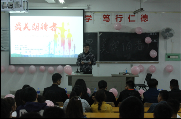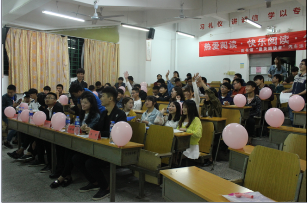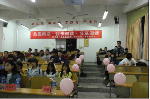 活動(dòng)在各班級(jí)如火如荼的開(kāi)展,旨在讓全系同學(xué)分享了自己在閱讀中的種種收獲,為同學(xué)們營(yíng)造出溫馨的讀書(shū)氛圍,感受讀書(shū)的愜意。各班同學(xué)們還紛紛在“享讀書(shū)之樂(lè),浴書(shū)香之馨”的現(xiàn)場(chǎng)橫幅上簽下自己的名字,倡議大家“好讀書(shū) 勤讀書(shū) 薦好書(shū)”。經(jīng)過(guò)各支部推薦選拔,4月11日在北區(qū)22號(hào)樓汽一階教室舉辦此次活動(dòng)的決賽,活動(dòng)特邀圖書(shū)館學(xué)生館員聯(lián)合會(huì)代表和我系學(xué)生會(huì)主席團(tuán)與各部門(mén)長(zhǎng)參與評(píng)選,同學(xué)不僅紛紛踴躍推薦自己心目中的好書(shū),還讓同學(xué)們分享了自己在閱讀中的心得與體會(huì),展示了禮儀、汽車營(yíng)銷等閱讀、學(xué)習(xí)成果。