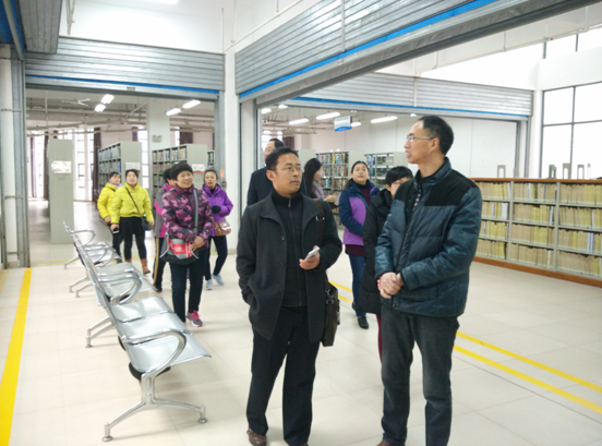 交流會(huì)結(jié)束后,陳館長(zhǎng)陪同韓廷水館長(zhǎng)一行參觀了校史館和圖書(shū)館各類(lèi)閱覽室、開(kāi)架書(shū)庫(kù)及二線書(shū)庫(kù)。
