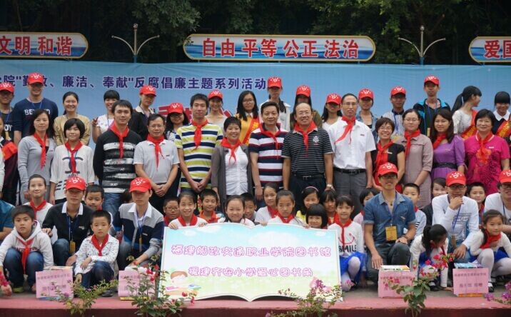 10月22日下午,我院圖書館與齊安小學(xué)共同舉辦“大手拉小手讓愛漂流讓書香溢滿校園”——福建船政交通職業(yè)學(xué)院圖書館愛心圖書角援建及黨員與農(nóng)民工子女結(jié)對幫扶活動,該活動為學(xué)院“勤政、廉潔、奉獻(xiàn)”反腐倡廉主題系列活動之一。院黨委陳炎生副書記、齊安小學(xué)趙敏娟校長、蓋山鎮(zhèn)政府領(lǐng)導(dǎo)、學(xué)院紀(jì)檢監(jiān)察處林建斌處長、圖書館陳家越館長及團(tuán)委王雪梅副書記等領(lǐng)導(dǎo)出席了本次活動。