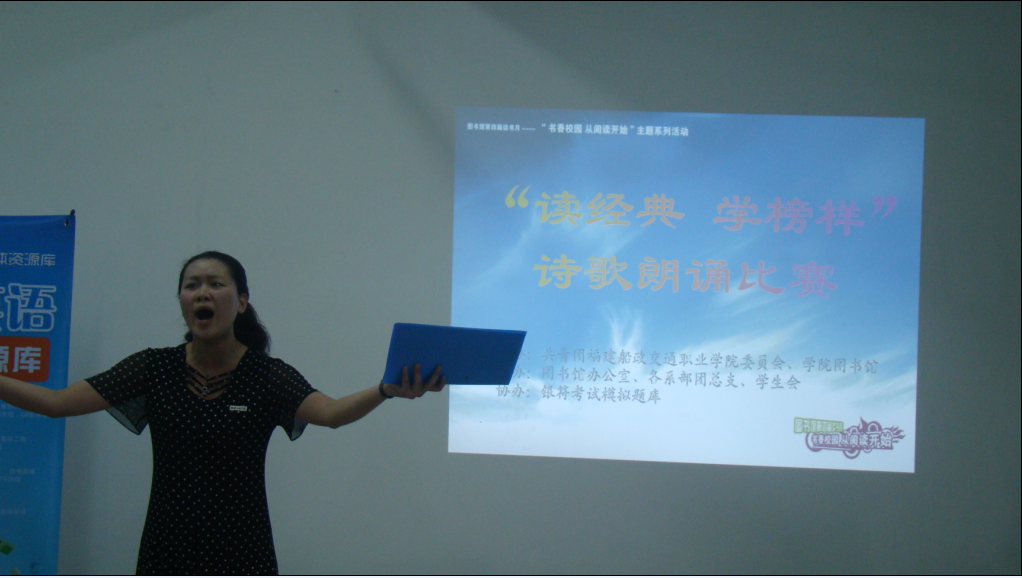 3月22日,圖書館“書香校園從閱讀開始”第四屆讀書月系列活動“讀經(jīng)典學(xué)榜樣”詩歌朗誦比賽在圖書館9樓活動室舉行。全院近30名選手報名參加了比賽。
