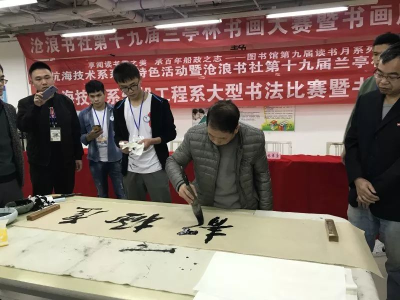 3月30號(hào)上午,航海技術(shù)系組織全系師生及書法愛好者開展了“享閱讀書香之美,承百年船政之志”——圖書館第九屆讀書月系列活動(dòng)之航海技術(shù)系系部特色活動(dòng)暨滄浪書社第十九屆蘭亭杯書法展印展及書法大賽?;顒?dòng)在圖書館一樓自習(xí)室舉辦。本次活動(dòng)邀請(qǐng)了輪機(jī)工程系主任陳清彬老師、林祥庚老師、航海技術(shù)系團(tuán)總支林杰老師及后勤處老師謝小煌。