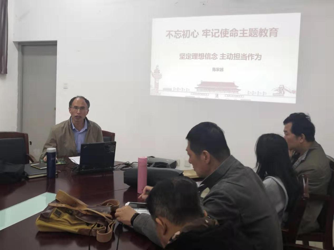 11月21日上午,根據(jù)學院“不忘初心、牢記使命”主題教育工作安排部署,圖書館館長陳家越在館內(nèi)9樓會議室為全體館員做了“不忘初心,牢記使命”的專題黨課,他圍繞“以堅定的理想信念堅守初習心”、“堅定理想信念永葆政治本色”、“在知行合一中主動擔當作為”等三個方面進行了闡述。家越館長指出,我們要時刻不忘我們黨來自人民、根植人民,全體館員要深入學習習近平新時代中國特色社會主義思想,檢視自己的理想信念和思想言行,永葆政治本色,要自覺運用當代中國馬克思主義去改造客觀世界,在投身實踐過程中主動擔當作為。