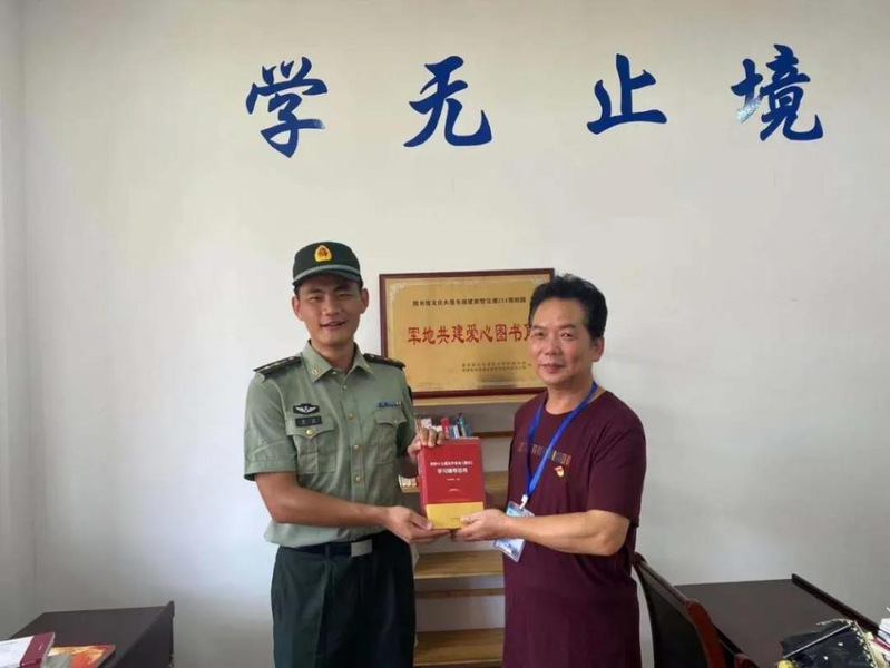 捐贈儀式上大家親切交談,學兵營教練員、學兵代表紛紛表示:讀書對一個人的成長進步很重要,是凝魂聚氣、強基固本的基礎(chǔ)工程。此次圖書角的建成,為他們提供了學習資源,極大的改善了他們的閱讀環(huán)境。讓他們在辛苦的訓練之余,有了更好、更有營養(yǎng)的休閑娛樂。