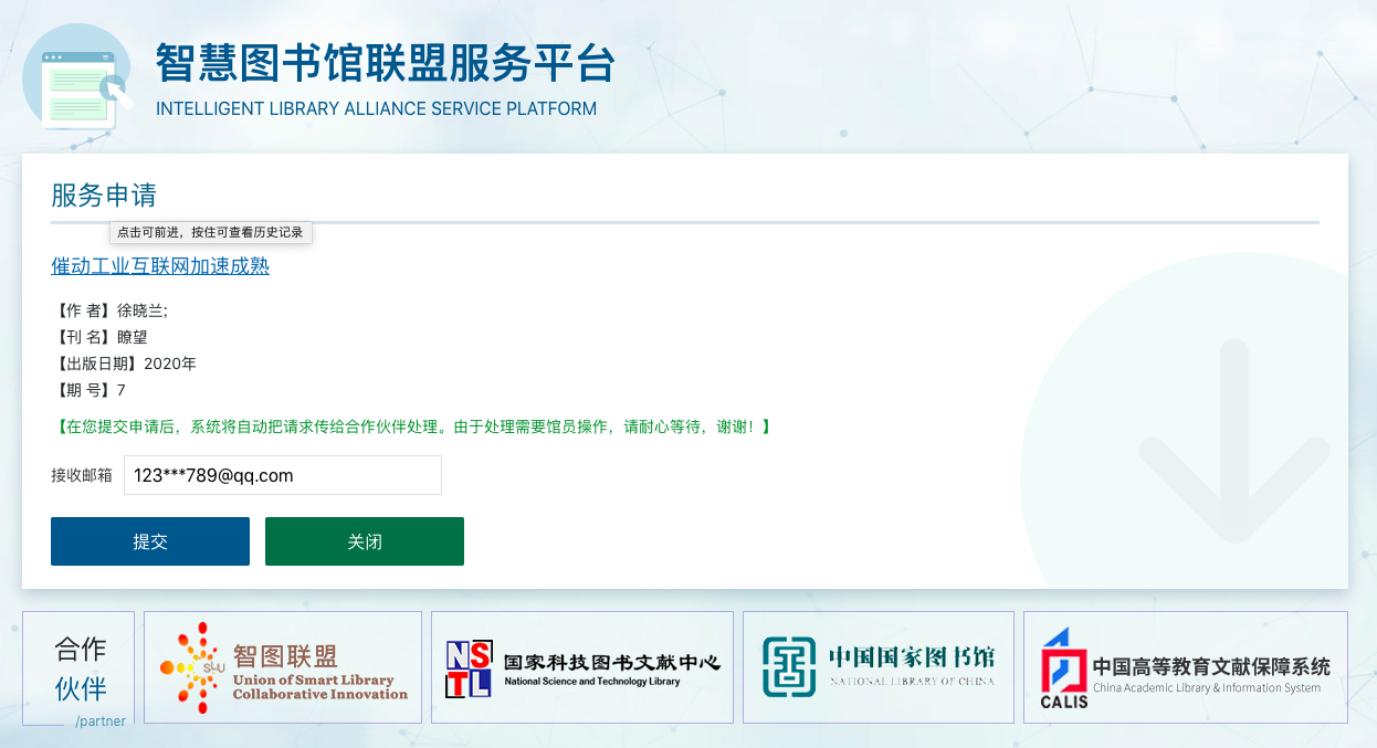 全文獲?。?/strong>圖書館館藏文獻(xiàn)直接定位到來源數(shù)據(jù)庫,讀者可直接下載。其他資源通過全國智慧圖書館聯(lián)盟服務(wù)平臺提供文獻(xiàn)保障服務(wù),24小時(shí)內(nèi)響應(yīng)申請。