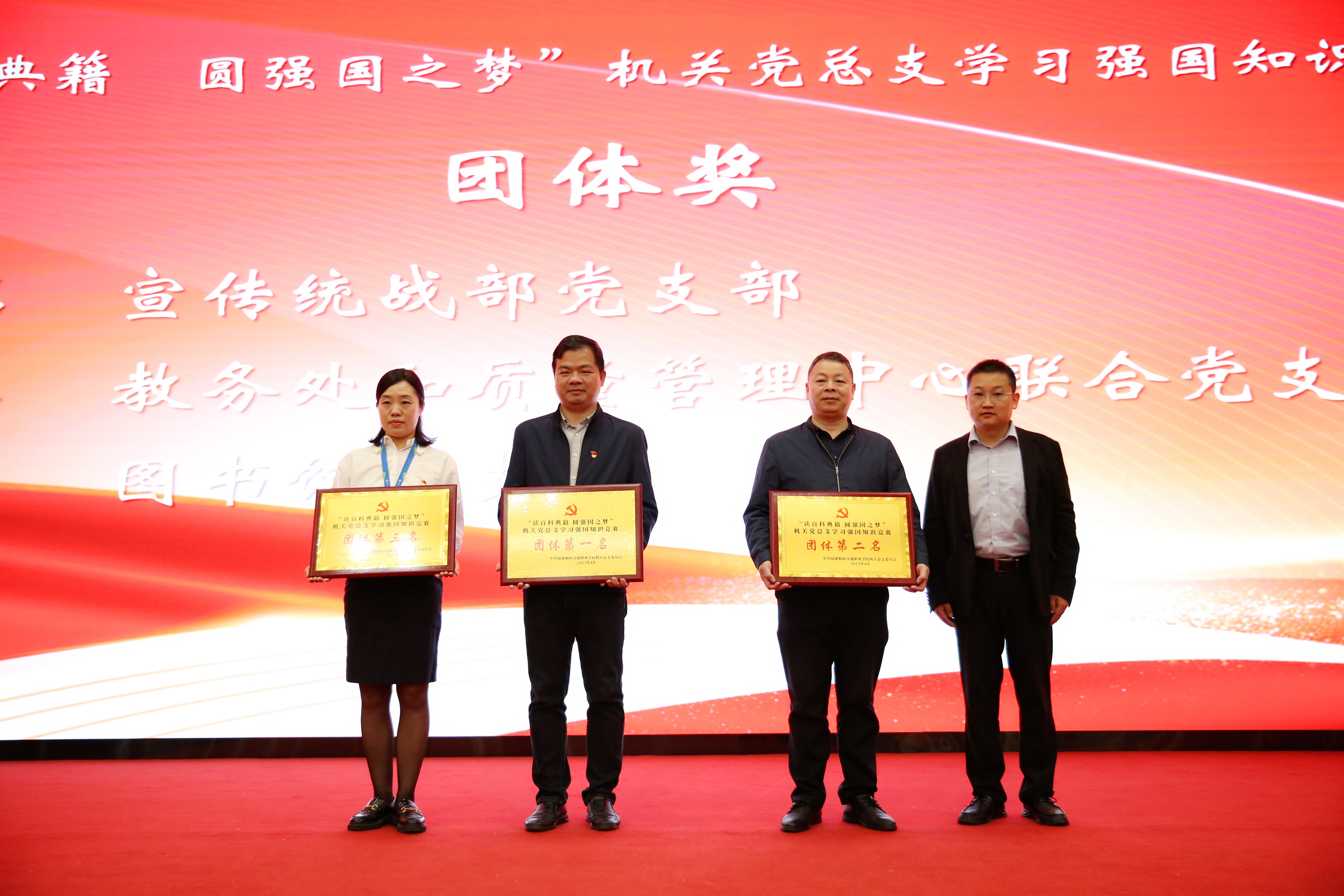 同時(shí),我校師生為大家帶來了《請(qǐng)黨放心,強(qiáng)國(guó)有我》精彩的朗誦表演。最后,還舉辦了“讀百科典籍,圓強(qiáng)國(guó)之夢(mèng)”機(jī)關(guān)黨總支學(xué)習(xí)強(qiáng)國(guó)知識(shí)競(jìng)賽及學(xué)生各類獎(jiǎng)項(xiàng)的頒獎(jiǎng)。