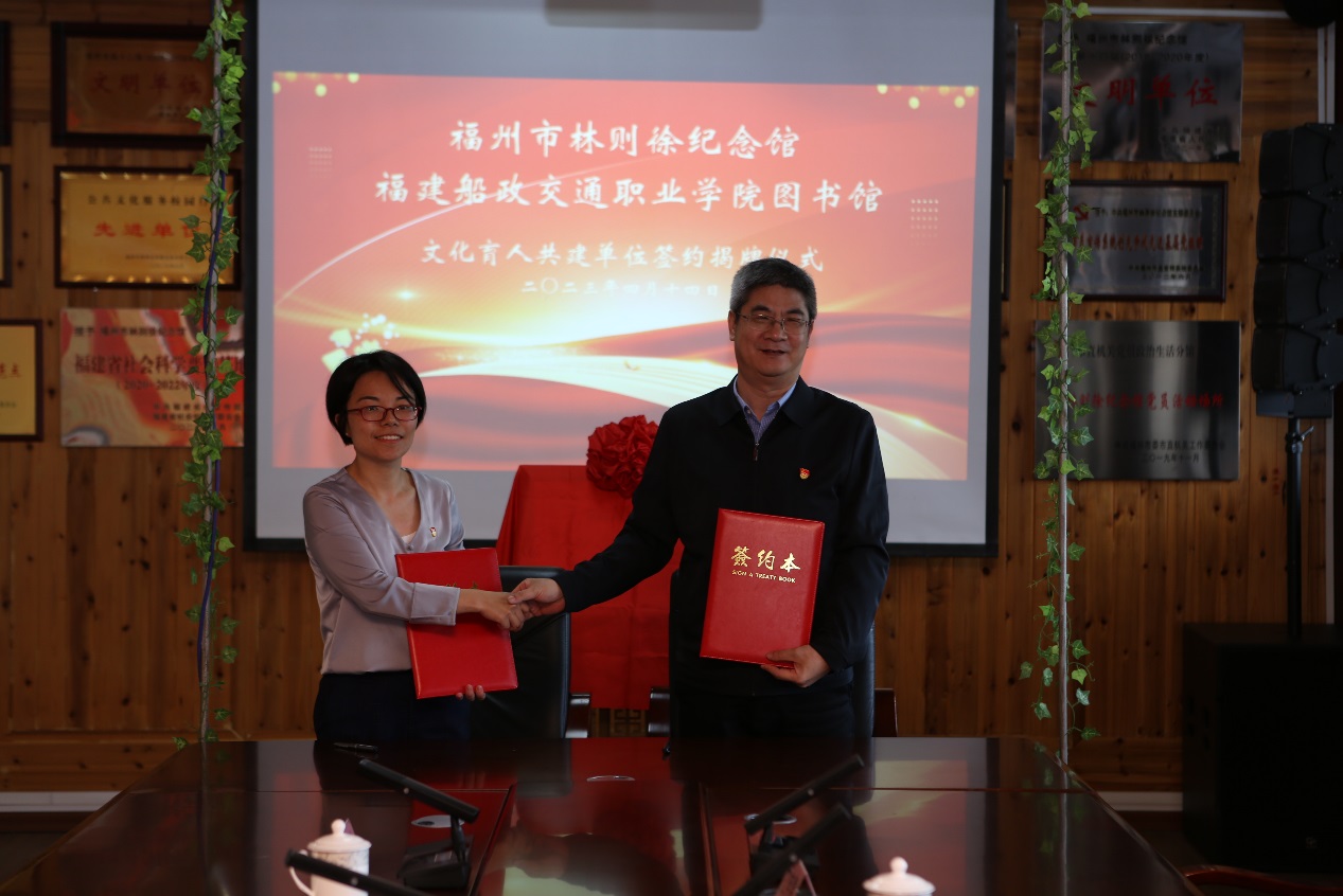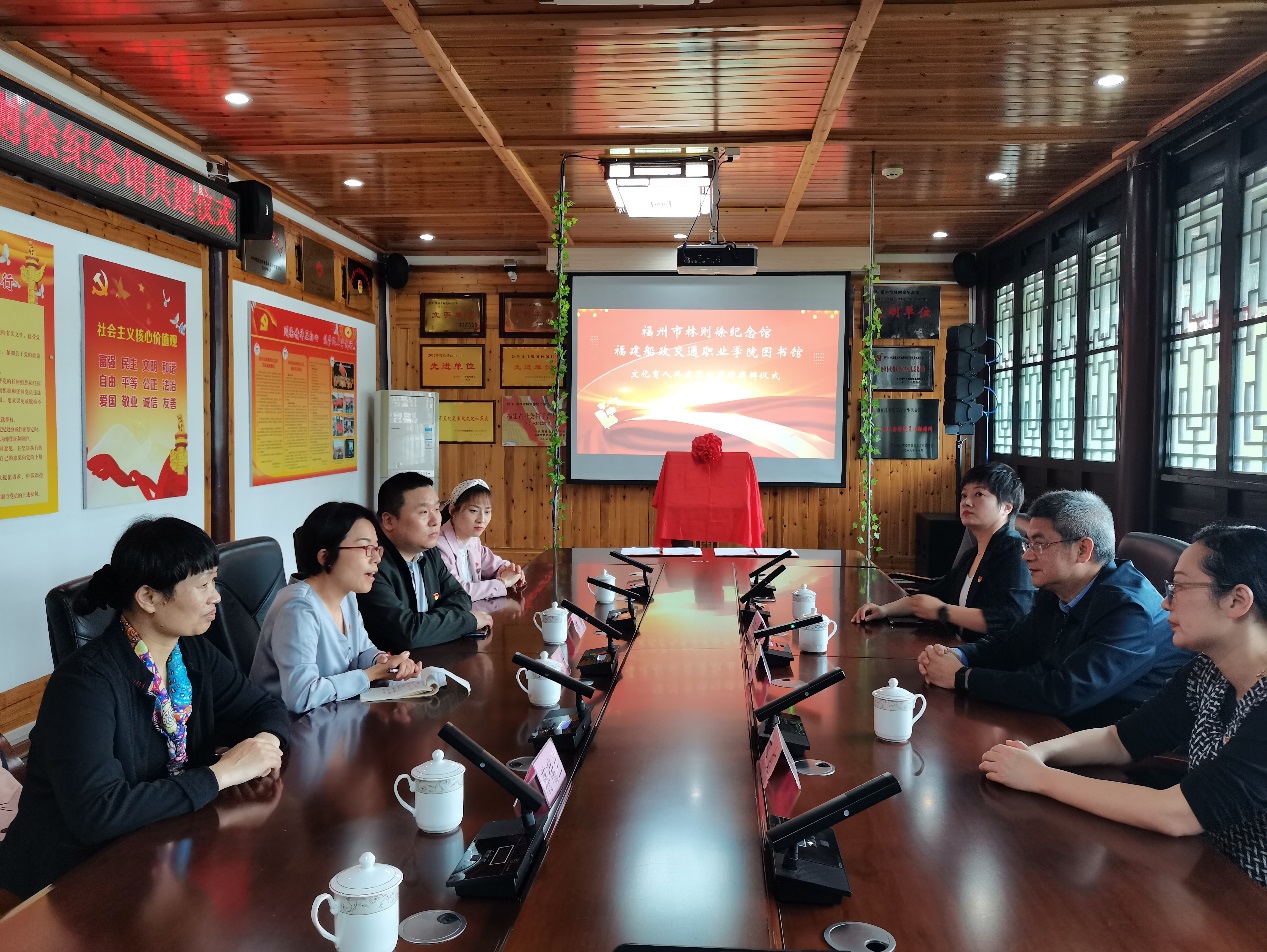 為進(jìn)一步在深學(xué)細(xì)照篤行習(xí)近平新時(shí)代中國(guó)特色社會(huì)主義思想上下功夫,把學(xué)習(xí)全國(guó)兩會(huì)精神與學(xué)習(xí)黨的二十大及二十屆一中、二中全會(huì)精神相結(jié)合,結(jié)合省委部署實(shí)施“深學(xué)爭(zhēng)優(yōu)、敢為爭(zhēng)先、實(shí)干爭(zhēng)效”行動(dòng),我館積極探索館館合作新模式,在進(jìn)一步加強(qiáng)船政文化的傳承與發(fā)揚(yáng)的基礎(chǔ)上,不斷創(chuàng)新文化教育新形式,建立起資源共享、合作共贏的長(zhǎng)效機(jī)制。4月14日,我館與福州市林則徐紀(jì)念館簽署共建文化育人單位并舉行揭牌儀式。林則徐紀(jì)念館黨支部書(shū)記、館長(zhǎng)陳繼勇,黨支部副書(shū)記林虹,副館長(zhǎng)鐘田田,我館黨支部書(shū)記、館長(zhǎng)陳林帶隊(duì),圖書(shū)館黨支部全體與會(huì)人員及入黨積極分子,黨政辦公室黨支部黨員代表共同參加了共建交流活動(dòng)。