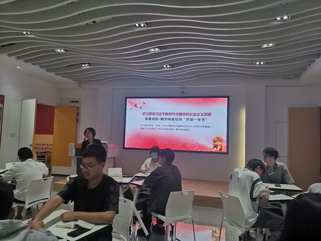 圖書(shū)館黨支部書(shū)記陳林主持會(huì)議,帶領(lǐng)全體黨員集中學(xué)習(xí)《習(xí)近平新時(shí)代中國(guó)特色社會(huì)主義思想專(zhuān)題摘編》和黨的二十大報(bào)告。