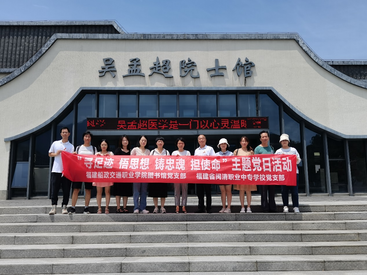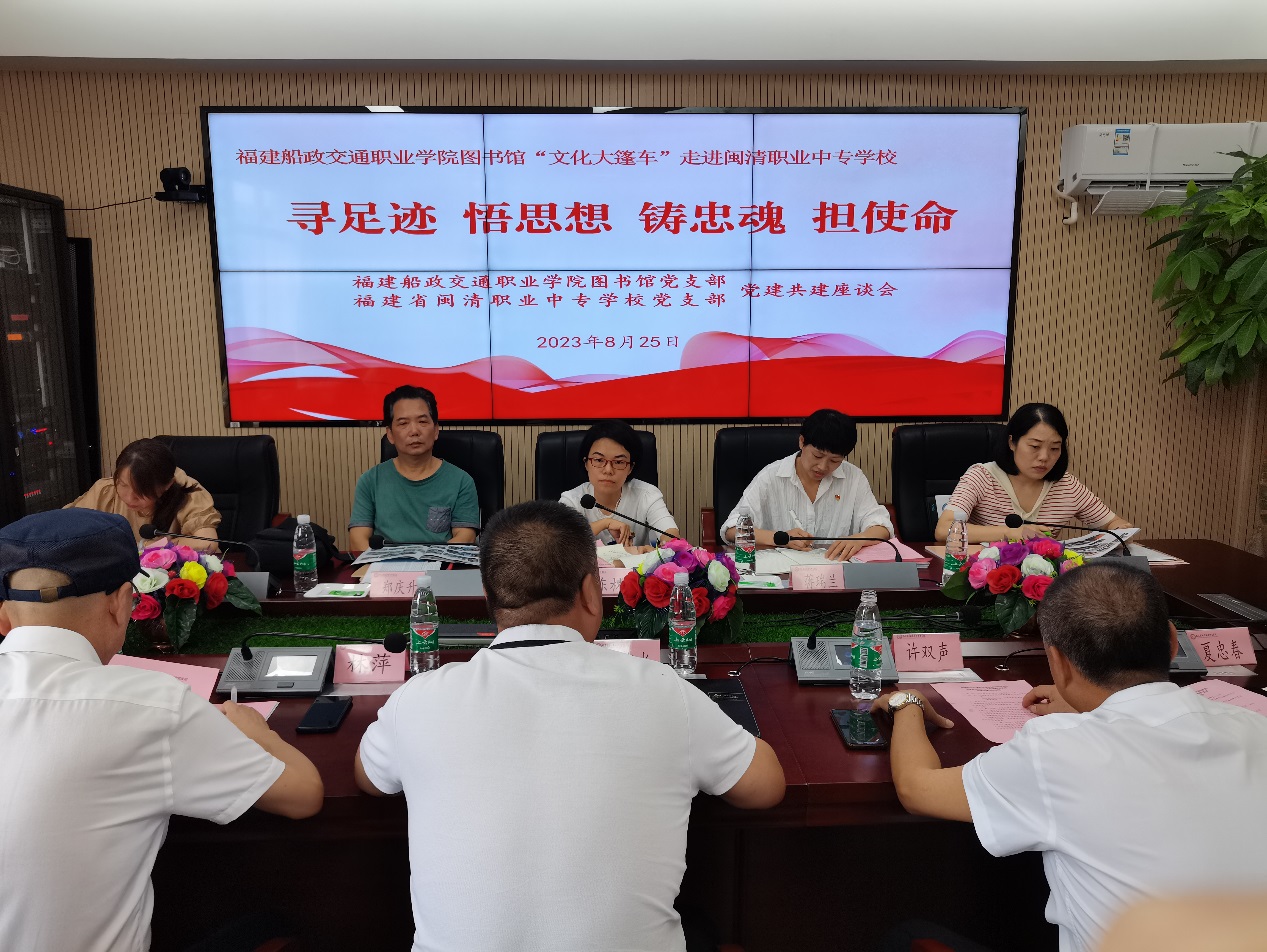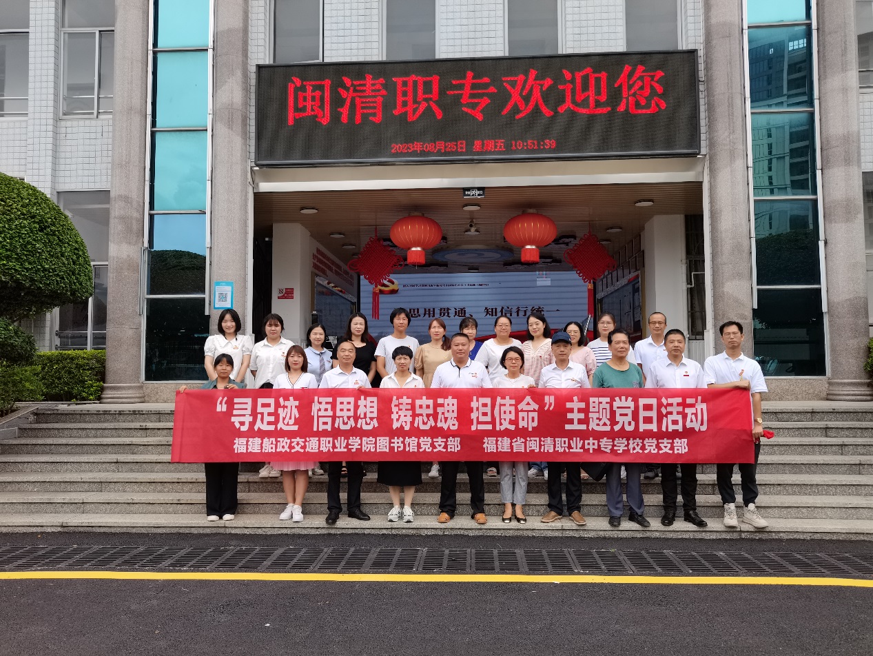 為推進(jìn)學(xué)習(xí)貫徹習(xí)近平新時(shí)代中國(guó)特色社會(huì)主義思想主題教育走深走實(shí),深入實(shí)施深學(xué)爭(zhēng)優(yōu)、敢為爭(zhēng)先、實(shí)干爭(zhēng)效行為,教育引導(dǎo)圖書(shū)館黨支部全體黨員堅(jiān)定理念信念、增強(qiáng)斗爭(zhēng)本領(lǐng),8月25日,福建船政交通職業(yè)學(xué)院圖書(shū)館“文化大篷車(chē)”走進(jìn)閩清職業(yè)中專(zhuān)學(xué)校,開(kāi)展“尋足跡、悟思想、鑄忠魂、擔(dān)使命”活動(dòng)。閩清職業(yè)中專(zhuān)學(xué)校校長(zhǎng)陳友水,閩清職業(yè)中專(zhuān)學(xué)校黨支部書(shū)記林萍,學(xué)院圖書(shū)館館長(zhǎng)陳林等21人出席活動(dòng)。