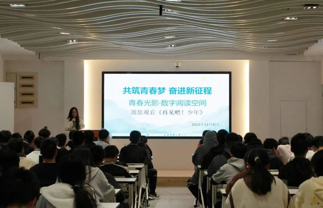 2023年12月8日,青春光影?數(shù)字閱讀空間開(kāi)展青春劇場(chǎng)電影展播活動(dòng),以“共筑青春夢(mèng) 奮進(jìn)新征程”為主題,邀請(qǐng)全校師生共同觀看電影《再見(jiàn)吧!少年》。