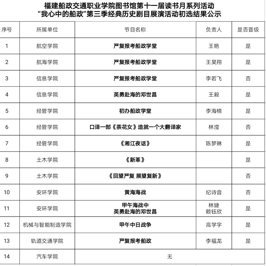 經(jīng)過(guò)全校學(xué)生的積極參與,各二級(jí)學(xué)院的評(píng)比選送,最終13個(gè)劇目進(jìn)入此次活動(dòng)的初賽?,F(xiàn)將初選結(jié)果公示如下