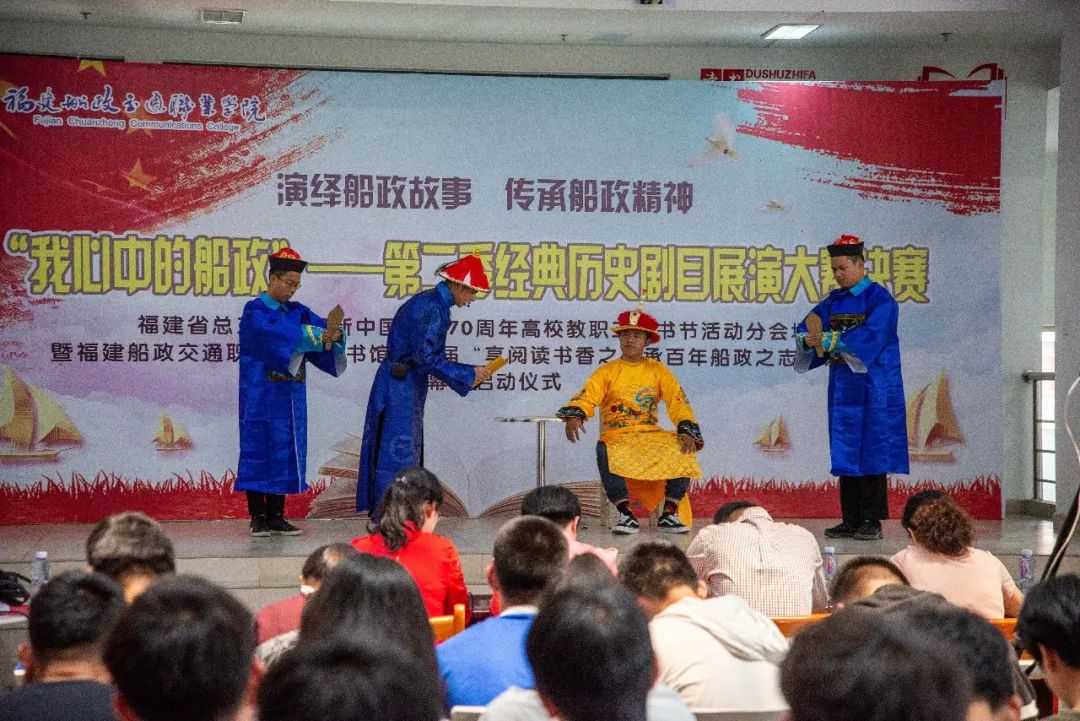 為深入宣傳船政文化,提升我館閱讀推廣活動(dòng)育人功能,圖書(shū)館于近日在我校開(kāi)展“傳承百年紅色基因 品閱書(shū)香船政文化”圖書(shū)館第十一屆讀書(shū)月系列活動(dòng)暨“我心中的船政”第三季經(jīng)典歷史劇目展演比賽。