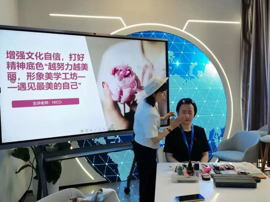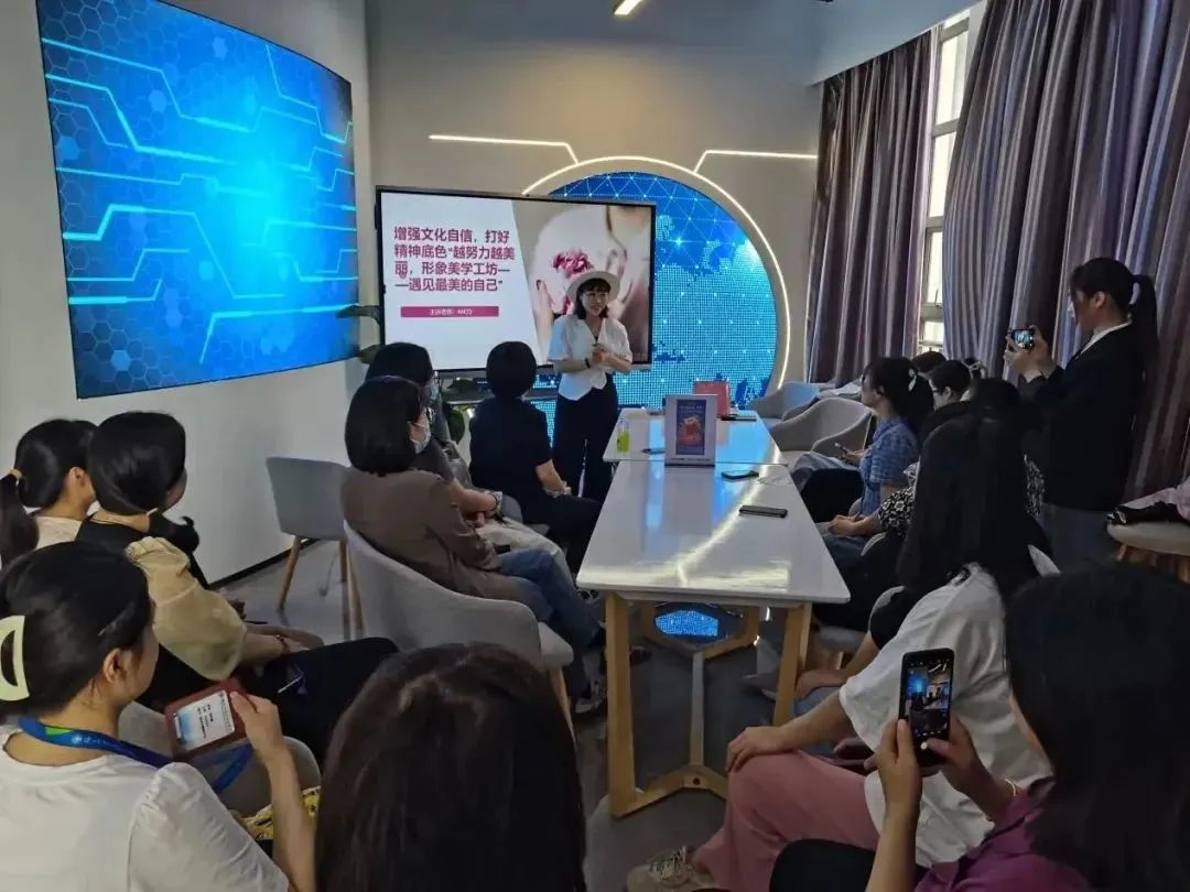 主講嘉賓國家級(jí)一級(jí)形象設(shè)計(jì)技師、國家級(jí)高級(jí)化妝師肖饒娟老師,從色彩辨識(shí)與服裝搭配運(yùn)用、場(chǎng)合著裝、職業(yè)妝容速成等不同方面進(jìn)行了闡釋,教授大家工作生活中的美學(xué)與美感。同時(shí),現(xiàn)場(chǎng)還邀請(qǐng)了一位老師進(jìn)行日常簡(jiǎn)妝的細(xì)致演示,并積極鼓勵(lì)大家善于發(fā)現(xiàn)自身的美,品味我們的曼妙人生。