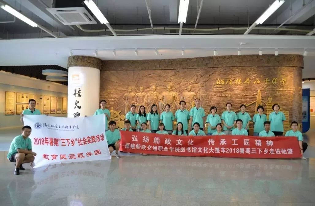 2018年暑期,學(xué)院共有15支隊(duì)伍參加暑期三下鄉(xiāng)社會(huì)實(shí)踐活動(dòng)。圖書館思源志愿服務(wù)隊(duì)共計(jì)25名師生依托 “文化大篷車”項(xiàng)目,組成了圖書館暑期三下鄉(xiāng)“教育關(guān)愛服務(wù)隊(duì)”,帶著我院師生的愛心,通過以“弘揚(yáng)船政文化 傳承工匠精神”為主旨的一系列服務(wù)活動(dòng),在仙游開展了為期一周的暑期社會(huì)實(shí)踐活動(dòng),將滿滿的愛意傳遞到仙游縣市民的心中。