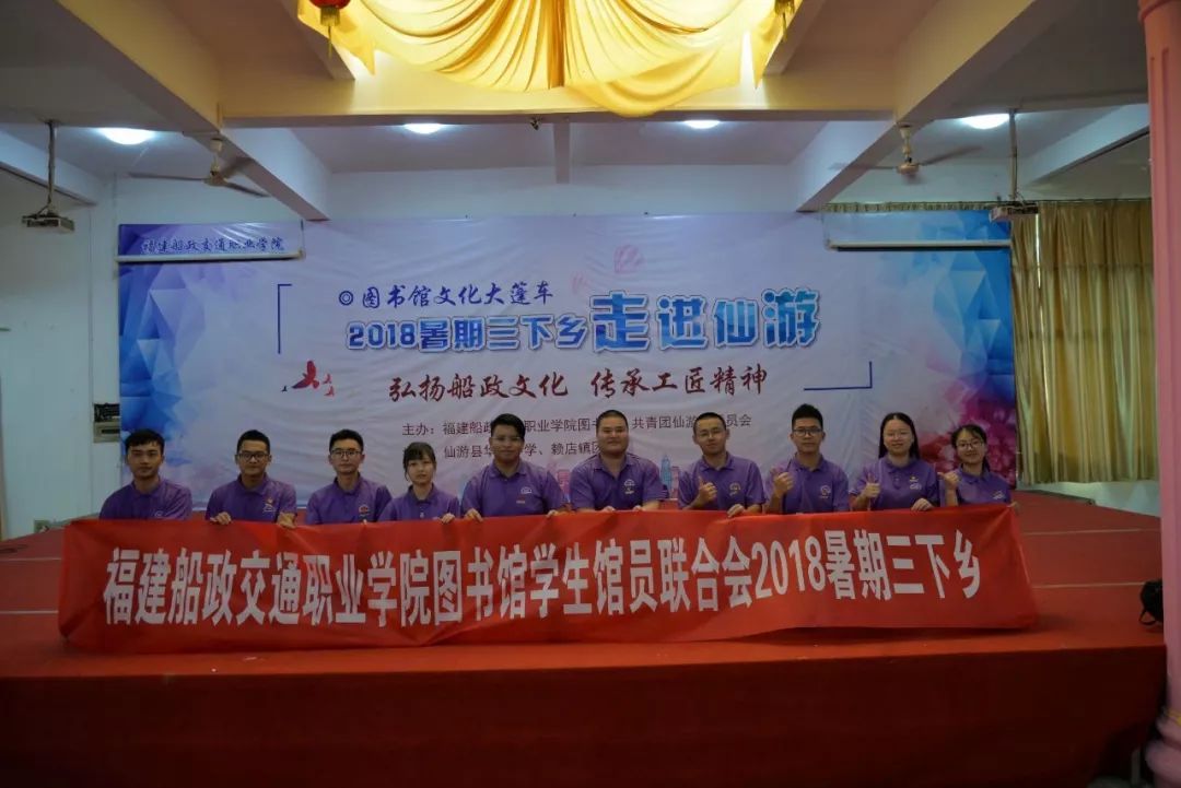 2018年我館依托圖書館“文化大篷車”項目,組成教育關愛服務團“三下鄉(xiāng)”服務隊,開展“弘揚船政文化,傳承工匠精神”----圖書館文化大篷車2018暑期三下鄉(xiāng)走進仙游活動,開展豐富多彩的活動,取得喜人的成績,獲得了共青團福建省委授予的福建省大中專學生暑期“三下鄉(xiāng)”社會實踐活動“先進集體”的榮譽稱號。